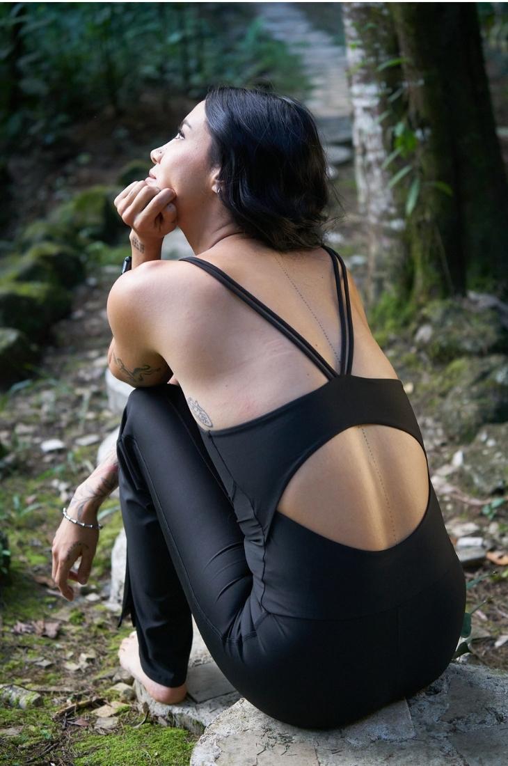 Confeccionado en nylon premium de alta compresión, este enterizo se adapta perfectamente al cuerpo, moldea la figura sin apretar y brinda un look alargado, moderno y cómodo para entrenar o disfrutar de un día activo. Su diseño con tiras cruzadas en la espalda y escote delicado en el frente añade un toque sofisticado y femenino, mientras que la bota recta con aberturas frontales estiliza la pierna y permite movilidad sin límites. Perfecto para yoga, pilates, caminatas conscientes o simplemente para sentirte poderosa